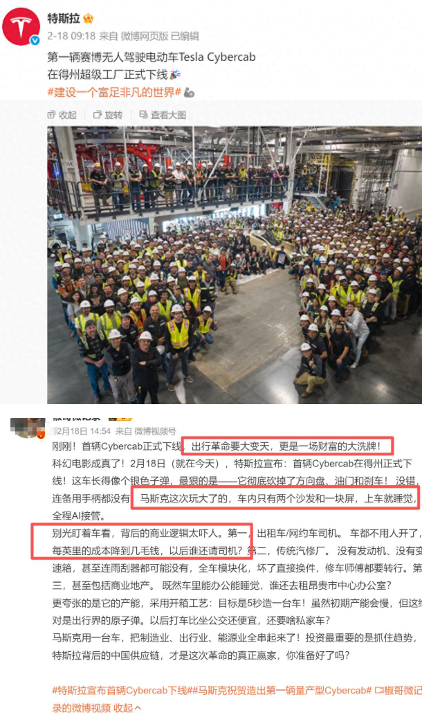 特斯拉首辆 Cybercab 在得州超级工厂下线的消息刷屏全网,无方向盘、无油门刹车的极致设计,“上车就睡觉、全程 AI 接管” 的宣传话术,再加上 5 秒造一台车的产能目标,让这款赛博无人驾驶电动车被贴上了 “出行革命” 的标签,甚至有声音高呼 “中国智驾的天塌了”。但剥开噱头看本质,特斯拉 FSD 技术尚未达到无人监督的 L3 级别,官方更是承认 Robotaxi 依赖双层人工监管,而中国智驾的发展进度与特斯拉、谷歌处于同一水平,所谓的 “天塌了” 不过是博眼球的夸张说法。特斯拉中国 AI 训练中心的落地,反而让中美智驾的正面 PK 更有看点,而真刀真枪的技术竞争,才是智驾行业发展的核心动力。